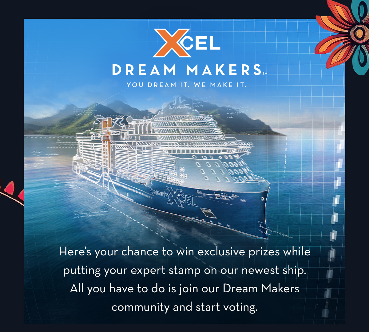 Thanks to the incredible input from our global Dream Makers Community, we’re busy transforming your dreams into realities aboard Celebrity Xcel®. Sign up below to join us as we start dreaming about the next big thing at sea.